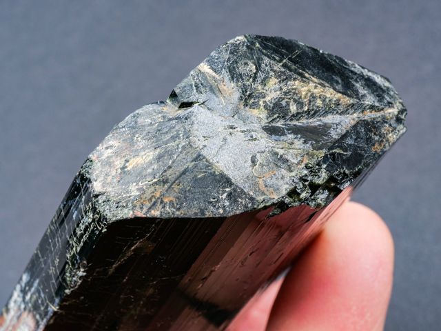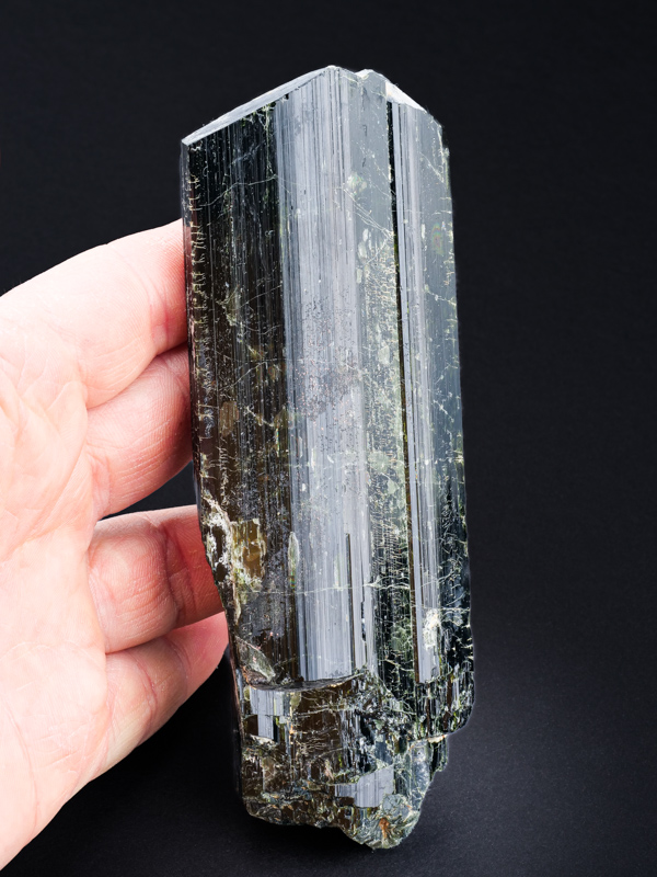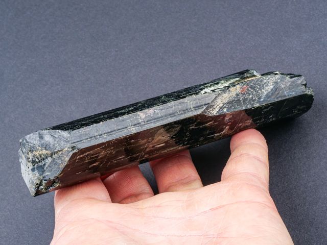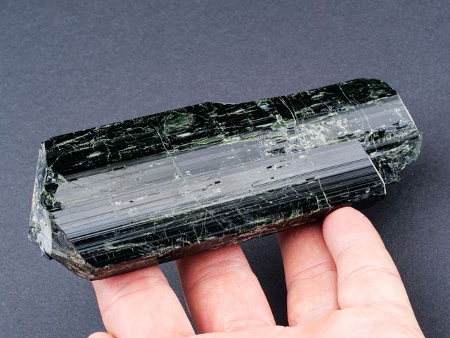 Krystal aktinolitu s ukončením - absolutní novinka na trhu. Tyto unikání krystaly aktinolitů byly nalezeny roku 2023 a jejich těžba byla pro náročnost definitivně ukončena. V porovnání se světovými lokalitami aktinolitů, kde se aktinolit vyskytuje v podobě velmi malých krystalů či vláknitých krystalů milimetrových rozměrů, zde se jedná o největší krystaly co byly kdy nalezeny. Jedná se o aktinolit z alpské parageneze, který tvoří ukončené extrémně velké krystaly. Výjimečně mohou srůstat do dvojčatého srůstu - jako je tomu v tomto případě. Jedno drobné setření z dutiny na hraně pomezí ukončení/prizma (zahrnuto do finální ceny). Na aktinolit se jedná o extrémně velký kámen.