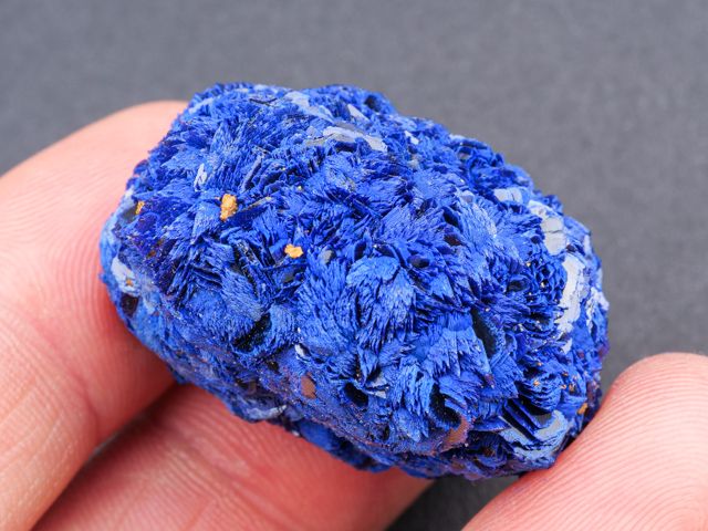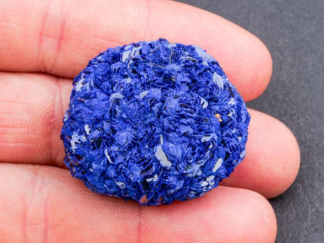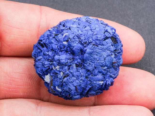 Navzdory kvalitě a množství materiálu z Rubcovsku bylo na lokalitě překvapivě málo vzorků uhličitanů mědi jako azurit nebo malachit. V tomto případě se jedná o pěkný, velmi kompletní a výrazně barevný vzorek azuritu z tohoto dolu. Téměř kulatá drúza je ukončená ze všech stran. Jedná se o nepoškozený vzorek. Barevně je vzorek o jeden tón tmavší, než jak je zachycen na fotografii.