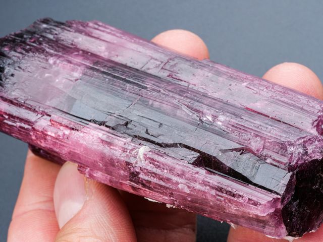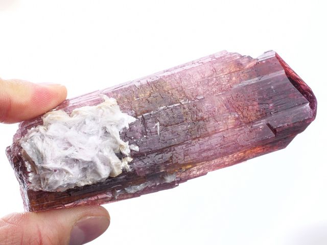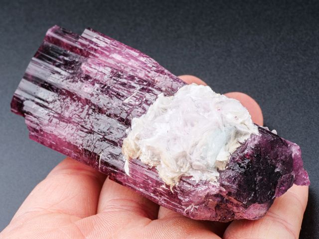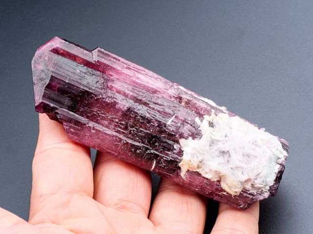 Velmi kvalitní vzorek turmalínu z lokality Malkhan. 105 mm velký krystal rubelitu s perfektním ukončením. Na vzorku je i několik malých krystalů živců a slídy. Kámen ve výborném stavu. Vhodný i jako investice - kameny z lokality Malkhan cenově rostou rok od roku raketově vzhůru. Součástí položky jsou dvě originální etikety předchozích majitelů.