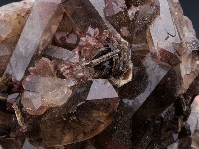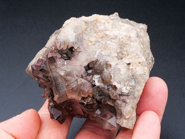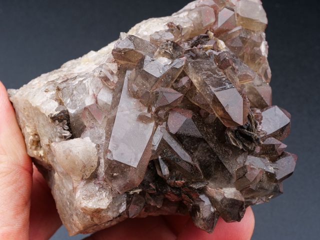 Pěkný vzorek záhněd na podložce s cinvalditem z fenomenální lokality Cínovec.Pěkný vzorek záhněd na podložce s cinvalditem z fenomenální lokality Cínovec. Největší krystal záhnědy je 3,8 cm velký. Záhnědy jsou velmi čisté. Sběr cca 1965 - původní etiketa součástí položky.