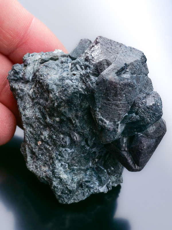 An excellent specimen of Alexandrite from the Masvingo (Fort Victoria) area, Zimbabwe.An excellent specimen of Alexandrite from the Masvingo (Fort Victoria) area, Zimbabwe. The specimen of Chrysoberyl displays as an excellent plate of intergrown Alexandrite crystals measuring to 3.2 cm! The Alexandrite crystals are seen in two habits. The first having a triangular aspect to them. The second and more characteristic crystal form displays well developed cyclically twinned crystals. The natural light colour is a rich green, displaying reddish areas in artificial light. The Alexandrite crystals are lustrous the light reflecting from the multi oriented faces. A classic specimen of the Chrysoberyl variety Alexandrite. Zimbabwe alexandrite combines exceptional color change along with well formed crystals.