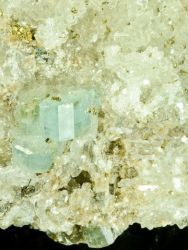 Bohatá ukázka několika velkých modrých krystalů apatitu o velikosti do 1,6 cm na křemenné podložce.Bohatá ukázka několika velkých modrých krystalů apatitu o velikosti do 1,6 cm na křemenné podložce. Estetičnost vzorku je umocněna krystaly křišťálu a pyritu do velikosti 2 mm. Vzorek není nijak poškozen, případně lze po podrobném prozkoumání nalézt několik velmi malých kontaktů z dutiny.