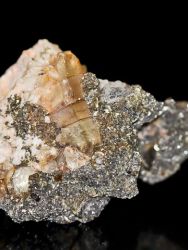 It is old and extremely rare specimen of apatite crystals that nested on muscovite matrix, from Akzhaylyau Mts.It's old and extremely rare specimen of apatite crystals that nested on muscovite and smoky quartz matrix, from Akzhaylyau Mts, Tarbagatai Range, Eastern Kazakhstan Province, Kazakhstan. This specimen features 4 sharp, glassy, prismatic crystals of apatite measuring up to 3.2 mm associated with dark crystals of muscovite. Scattered damage to the crystal edges throughout.