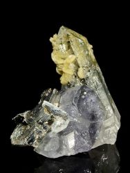 Malá, ale bohatá ukázka drobných krystalků arzenopyritu, apatitu, křišťálu a sideritu.Malá, ale bohatá ukázka drobných krystalků arzenopyritu o velikosti do 9 mm na křemenné podložce, které dominuje 13 mm velký ukončený krystal apatitu a 24 mm velký ukončený křišťál, který je částečně pokryt drobnými krystaly sideritu.