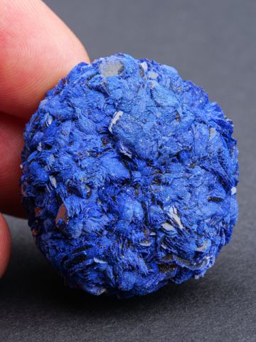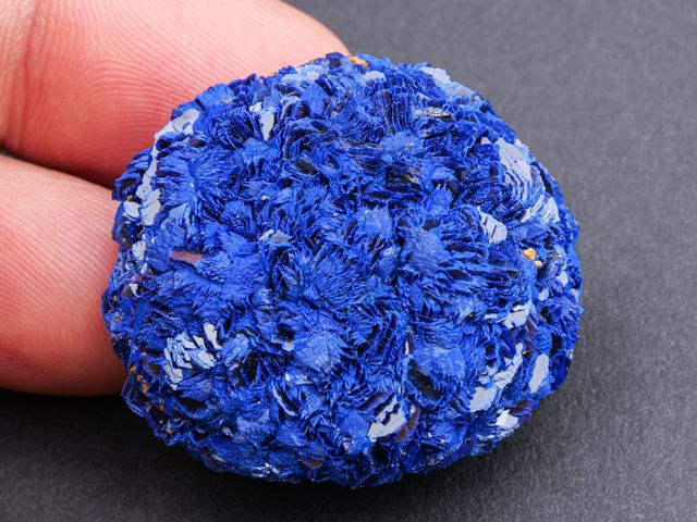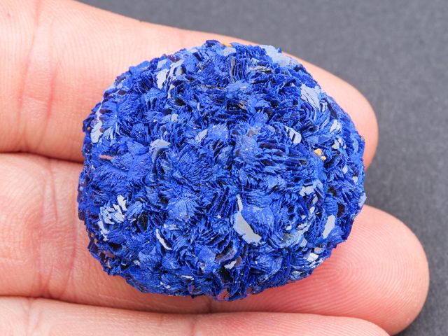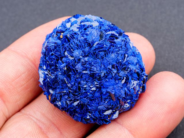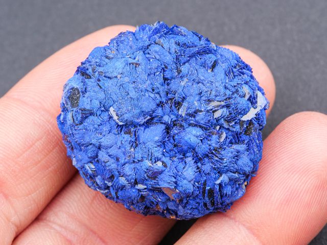 A beautiful, intense blue azurite from Rubtsovskiy Mine. Azurite is relatively rare for this mine, despite its wealth of copper mineralization, and the saturated color of the azurite "balls" found here really rank them highly compared to other locations. This piece is very beautiful, and is complete all around. Real color of this stone is darker than on our photos.