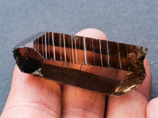 A single lustrous crystal from Puiva. Crystal is complete all around - terminated. This is a very good smoky quartz for this locality in particular and for any russian locale. Edges are chipped.