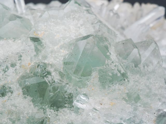 Group of transparent crystals of datolite with very well defined faces and edges, with extraordinary luster and transparency, very light green color with slightly bluish reflections.