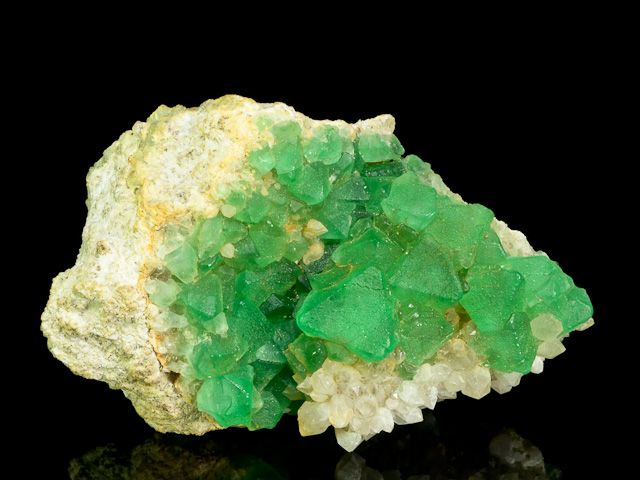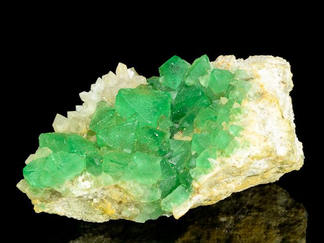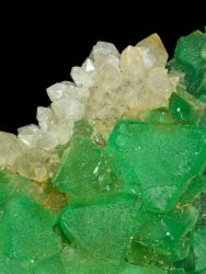 Drúza zeleného fluoritu na podložce v méně časté podobě oktaedrů z netradiční lokality Riemvasmaak.Drúza zeleného fluoritu na podložce v méně časté podobě oktaedrů z netradiční lokality Riemvasmaak. Nepoškozený vzorek sytě zelených fluoritů v top sběratelské kvalitě. Jedná se o kvalitní vzorek pro obohacení Vaší sbírky. Oktaedry o velikosti do 2,1 cm jsou doplněny ukončenými krystaly křišťálu o velikosti do 8 mm.