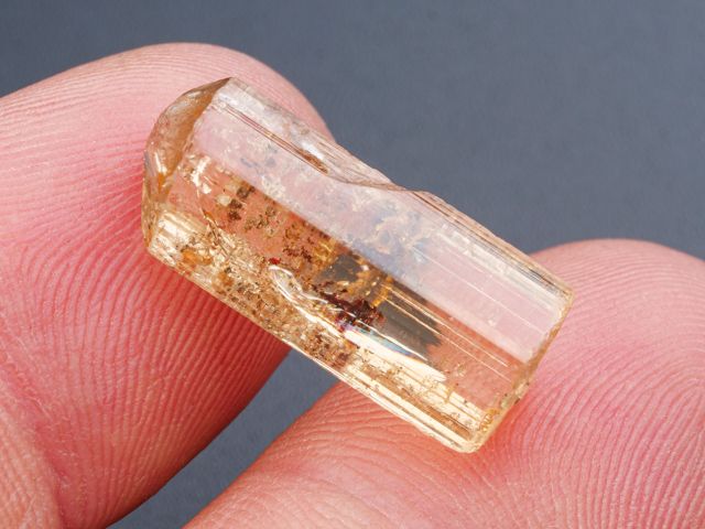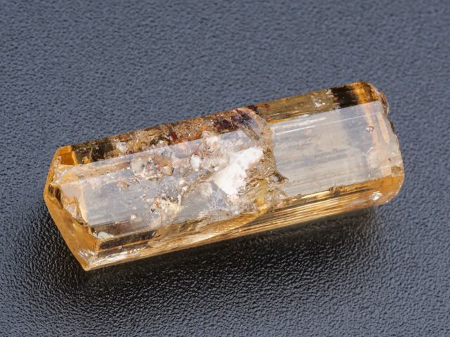 This is a vibrantly gemmy and brilliant topaz crystal from new workings at this locality.This is a vibrantly gemmy and brilliant topaz crystal from new workings at this locality. It weighs 2.5 grams! The crystal is complete all around. The termination is sharp and truly oustanding.