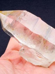 Krásně tvarovaný velmi čistý krystal křišťálu. Čistota a vysoký lesk jsou to co dělají tento vzorek zajímavým. Velmi estetická srostlice s jen drobným setřením hran (především malý boční krystal).
