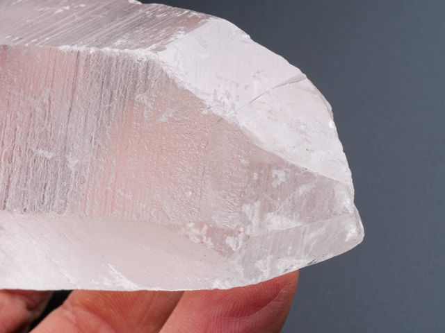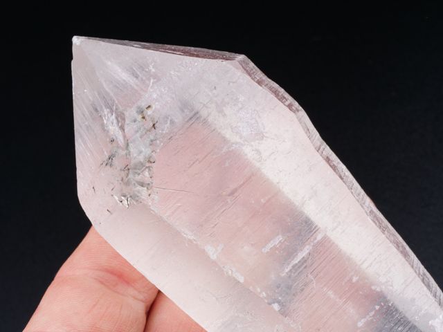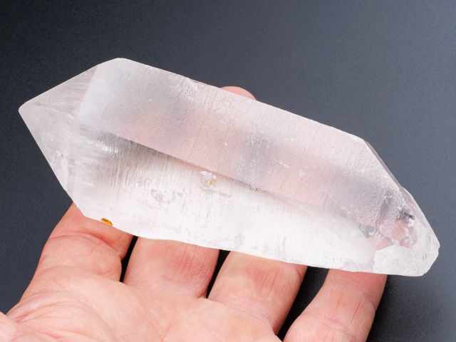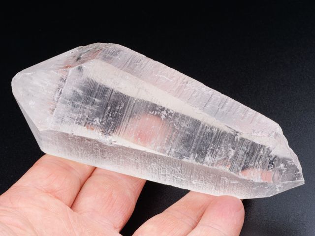 This is amazing stuff - lustrous quartz crystal. This terminated quartz crystal has and great luster, superb growth marks and great clarity. Top of termination and side part are chipped.