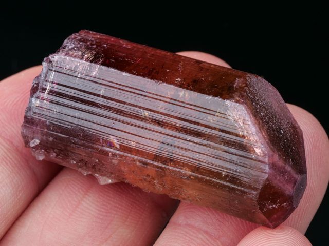A very nice example of the tourmaline variety Liddicoatite from a find in 2019. It has a beautiful, pink/red color to it. The crystal is lustrous, and terminated.