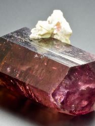 This gemmy, evenly-colored dark pink crystal is a classic color and style for the locality.This gemmy, evenly-colored dark pink crystal is a classic color and style for the locality. However, few truly killer thumbnails have come out compared to larger pieces, and to obtain one of this quality with some distinction or association (such as the chalcedony associated), is quite difficult.