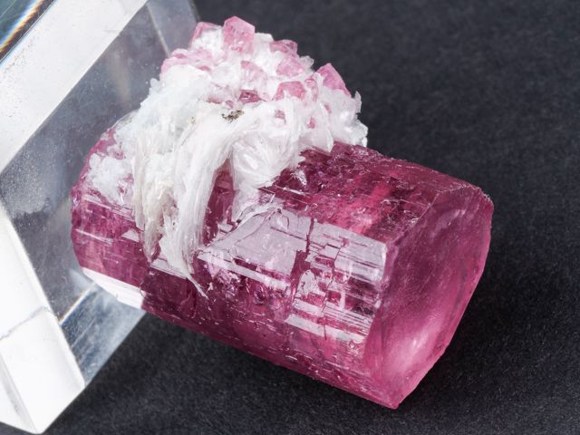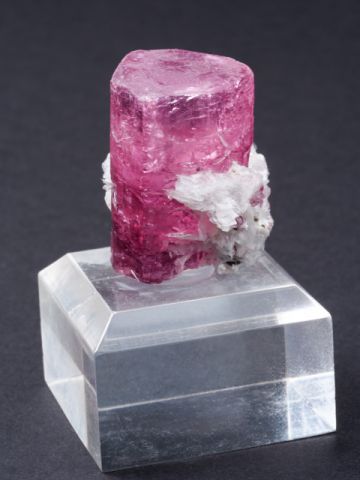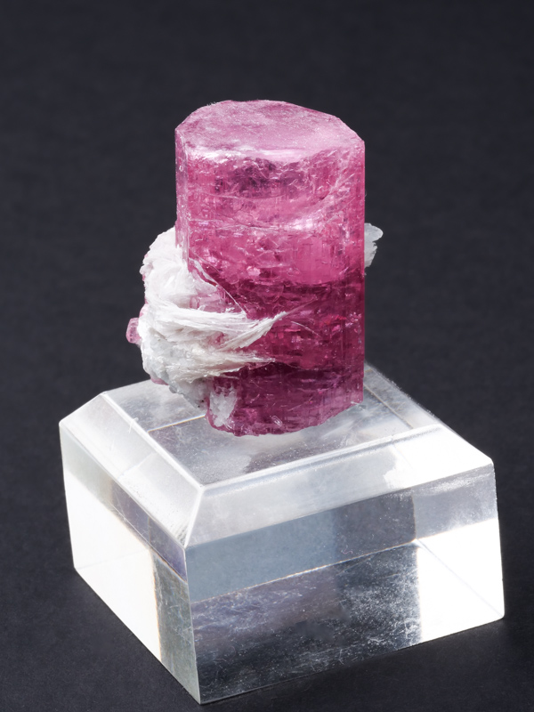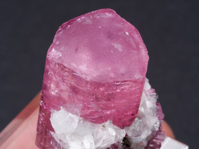 This gemmy, evenly-colored pink crystal is a non classic color and style for the locality.This gemmy, evenly-colored pink crystal is a non classic color and style for the locality. However, few truly killer thumbnails have come out compared to larger pieces, and to obtain one of this quality with some distinction or association (such as the mica associated), is quite difficult.