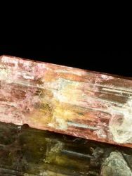 Ukončený krystal rubelitu se zeleným ukončením a s drobnou slídou na boční straně z lokality Nagreisupa Mine.Hezký ukončený krystal rubelitu se zeleným ukončením a s drobnou slídou na boční straně z méně známé lokality Nagreisupa Mine. Lesklý krystal vysoké čistoty bez poškození. Krystal lepidolitu na boční straně měří 11 mm.