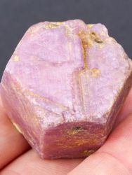 Velmi pěkný velký krystal rubínu (korund) z tanzanské lokality Geiro. Jedná se o sytě růžový rubín ze zajímavé africké lokality. Krystal je lesklý a dobře pravidelně vyhraněný.