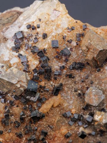 Opravdu velmi pěkný vzorek scheelitu společně s fluoritem a křemenem z fenomenální lokality Cínovec.Opravdu velmi pěkný vzorek scheelitu společně s fluoritem a křemenem z fenomenální lokality Cínovec. Největší krystal fluoritu měří 2 mm, ale v kombinaci s scheelity o velikosti až 6 mm se jedná o bohatou krásnou kombinaci na jednom vzorku. Křemen je z poloviny krásně zbarvený oxidy železa.