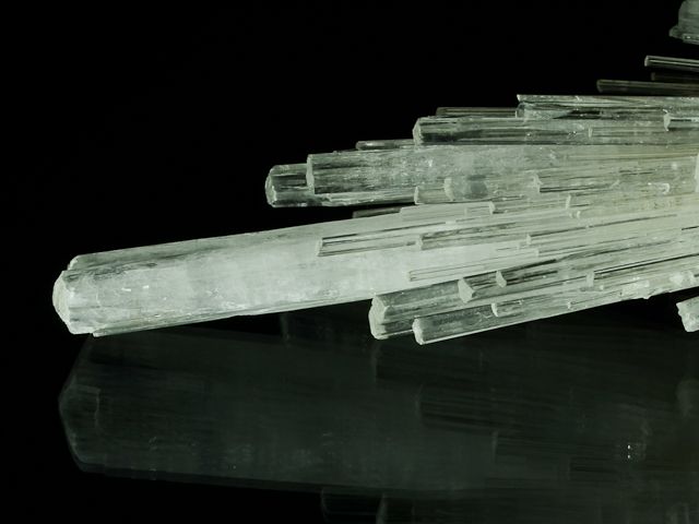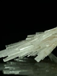 Velký vějíř krystalů skolecitu z indické lokality Nasik. Vzorek je lesklý, krystaly skolecitu jsou slušné čistoty (některé krystaly jsou gemmy). Krystaly v hodní partii drúzy jsou ukončené a nepoškozené, ve spodní části je několik krystalů bez ukončení. Vzhledem ke křehkosti vzorku bude kladen extrémní důraz na důkladnou opatrnost a kvalitu balení při expedici vzorku. Na plastovém podstavci je vzorek stabilizován a při dodržení opatrnosti při manipulaci nehrozí samovolné poškození vzorku.