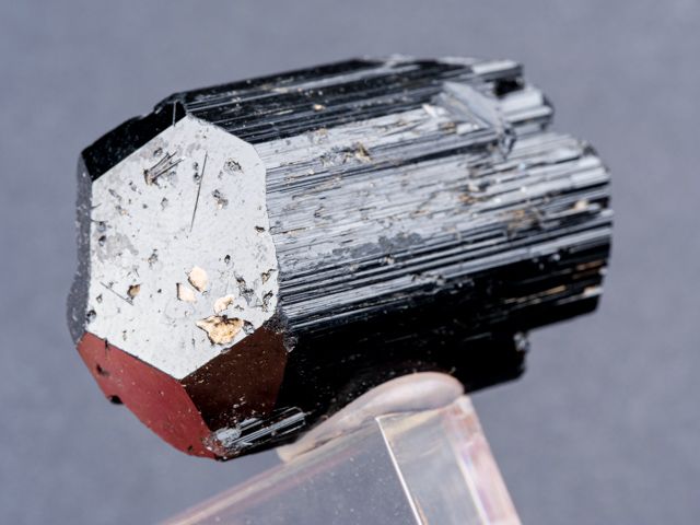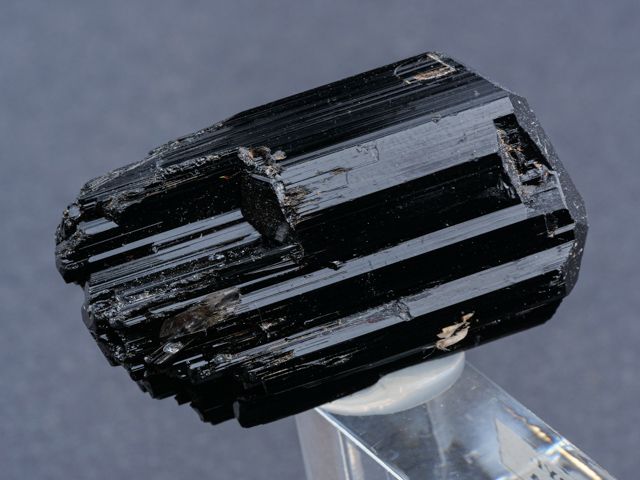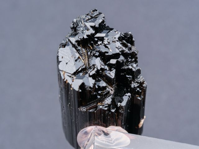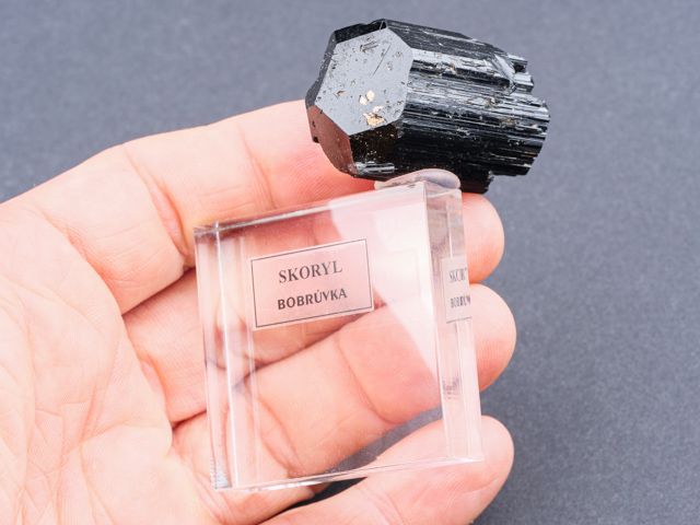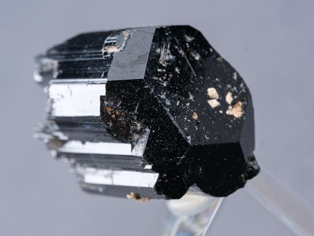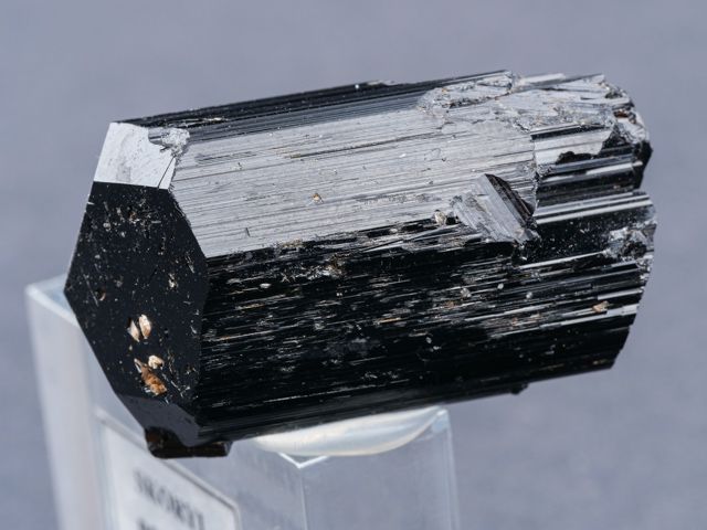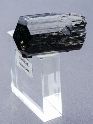 Dark-black/brown Schorl crystal from Bobrůvka. The tourmaline crystal has lustrous crystal faces.