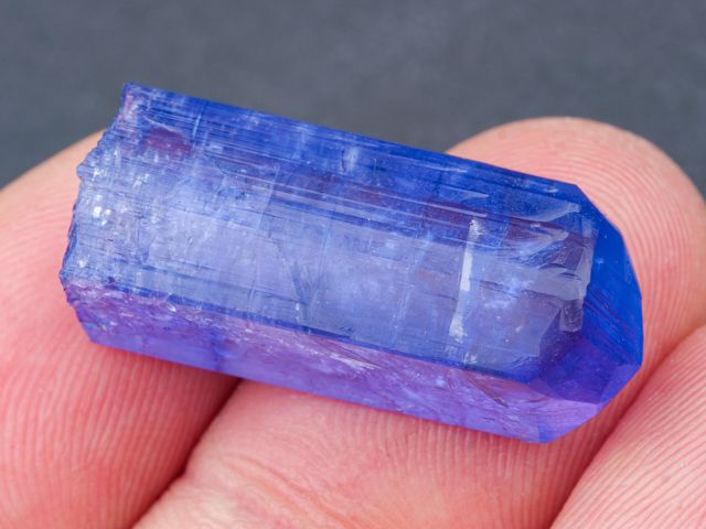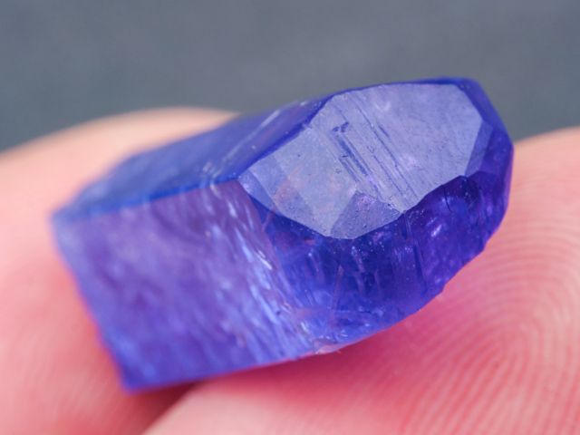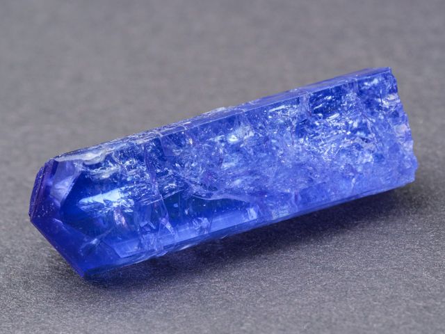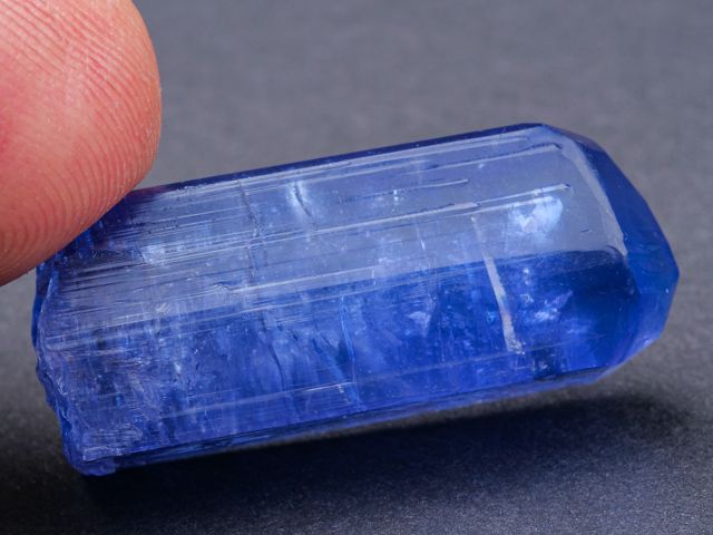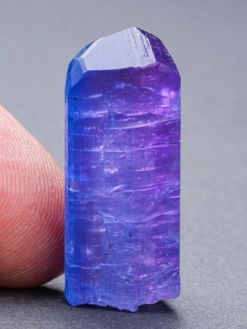 Lustrous terminated tanzanite crystal. The crystal is terminated, highly lustrous, internally transparent.
