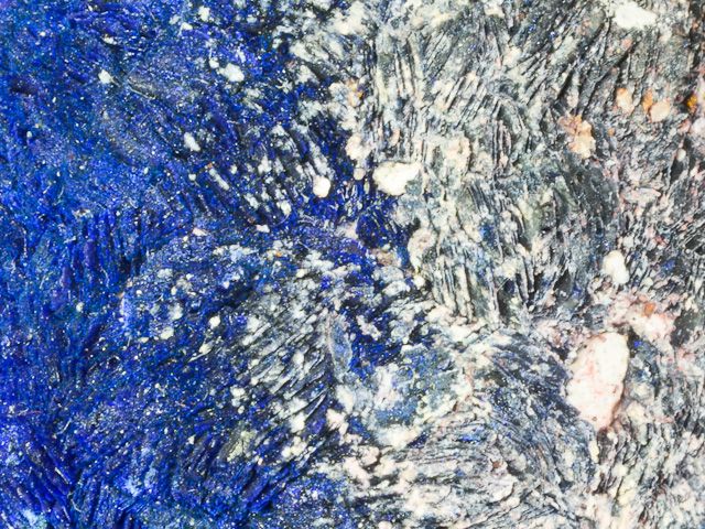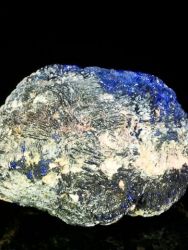 Lustrous blue azurite crystals in spherical aggregat with a sooty black tenorite from Rubtsovskiy Mine.Lustrous blue azurite crystals in spherical aggregat with a sooty black tenorite from Rubtsovskiy Mine. Azurite is relatively rare for this mine, despite its wealth of copper mineralization, and the saturated color of the azurite "balls" found here really rank them highly compared to other locations. Tenorite is absolutely rare for this mine. This piece is very beautiful, and is complete all around. Real color of this stone is darker than on our photos.