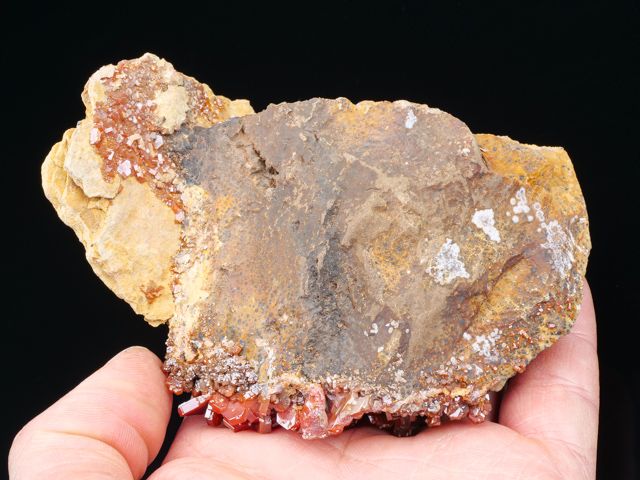 Vanadinit tvoří sytě červené, skelně až diamantově lesklé, částečně průsvitné, pěkně ohraničené, hexagonální krystaly dosahující velikosti až 8 mm.Vanadinit tvoří sytě červené, skelně až diamantově lesklé, částečně průsvitné, pěkně ohraničené, hexagonální krystaly dosahující velikosti až 8 mm. Super vzorek do sbírky!
