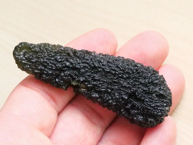 Krásný vltavín kapkovitého tvaru - 6,8 cm. Vltavín je tvarově úžasný s výraznou zelenou barvu. Tvarem je kámen předurčen do sbírky či kvalitního šperku. Kámen je v relativně dobrém stavu - žádný velký odštěp či odlom - ale po celé ploše se tu a tam najde několik jemných setření z vrstvy - největší 6,0x2,5 mm, která jsou zahrnuty do výsledné ceny).
