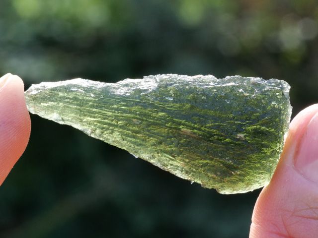 15.8 g real rare natural tektite - moldavite. This is a nice moldavite in the ribbon (or drop) shape. This stone is dark as you can see in the picture. A magical natural moldavite from Czech Republic. This specimen has been hand selected for high quality. No damage.