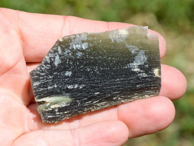 25.2 g real rare natural tektite - moldavite. This is a nice moldavite in the platt shape. This stone is dark as you can see in the picture. This specimen has been hand selected for high quality.