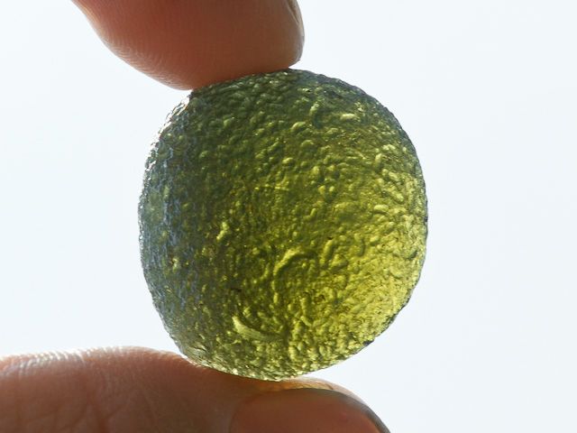 Moravský vltavín zelenohnědé barvy z lokality Suchohrdly. Kámen je lesklý a v dobrém stavu (na jedné straně je vidět velmi tenký 1 cm dlouhý otěr, ale toto je u moravských kamenů zcela běžné). Super kámen z moravské lokality s krásnou jemně důlkovitou skulptací. Výskyt moravských vltavínů je vzácnější, než jak tomu je na jihu Čech. Moravské vltavíny jsou navíc mírně odlišné jak svojí skulptací tak barvou.