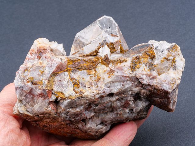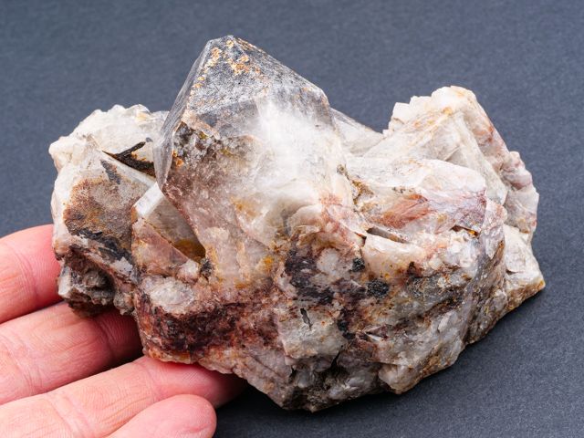 Very nice quartz crystals on matrix from Cínovec. Main crystal has a natural damage on the top.