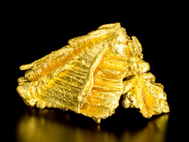 This fine gold specimen (3.7 g) is out of a completely new find from 2015 that has rapidly made a name for itself as a source for world class gold specimens.This fine gold specimen (3.7 g) is out of a completely new find from 2015 that has rapidly made a name for itself as a source for world class gold specimens. Best color, filigree growth and a vibrant sheen are trademark for this locale. No damage. With hoppered growth, sharp crystals and a 3-dimensional structure this is a brilliant example for the high quality of Brazils new gold deposit - one that has already been closed by police forces just several months after its discovery.